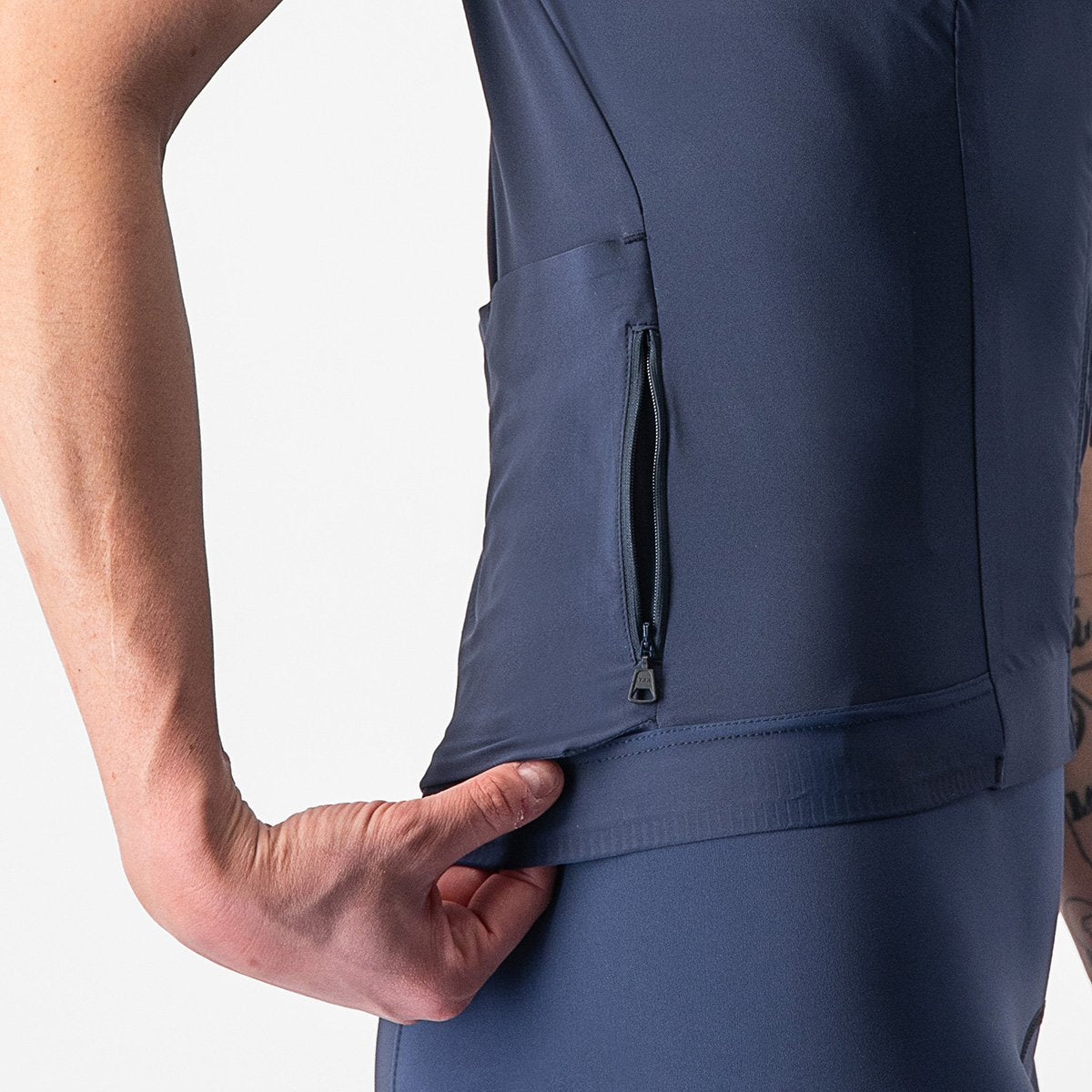 - Shoulder panel in recycled ribbed stretch woven mesh to keep you cool and comfortable while adding world-class aerodynamics